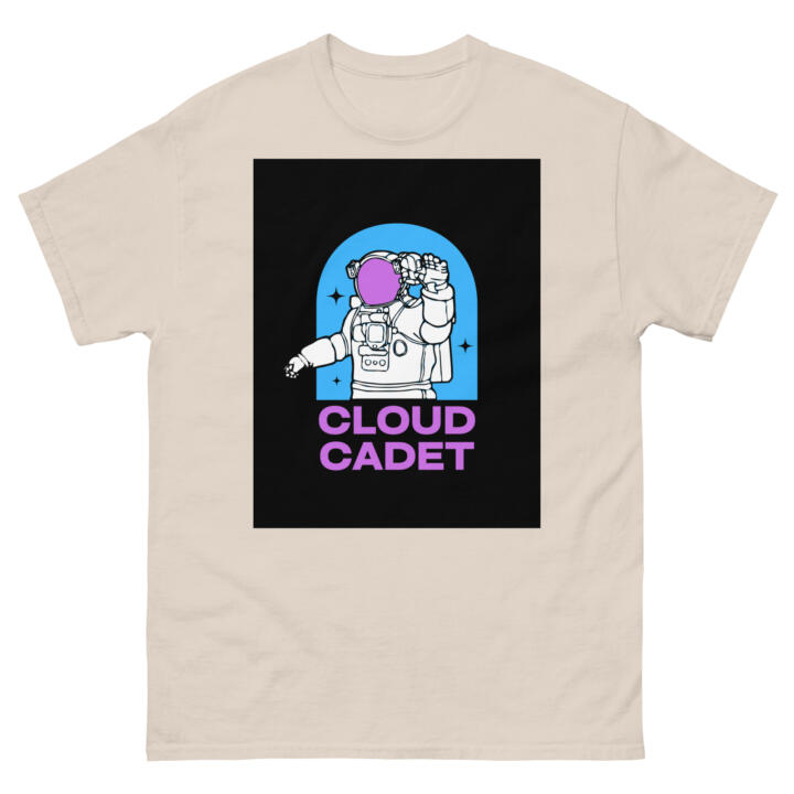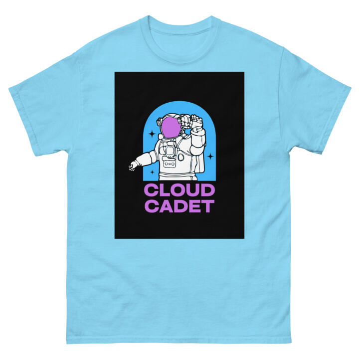 The Cloud Cadet t-shirt from Indacloud boasts several notable features that make it a standout product. Firstly, it's made from 100% cotton, known for its breathability and durability. This ensures that the T-shirt is comfortable and can withstand regular use. The shirt also features a classic design with sharp lines, giving it a structured look that is both stylish and versatile. This design makes the t-shirt suitable for various The Cloud Cadet t-shirt is available in various sizes, making it accessible to a wide range of customers with different body types and preferences.