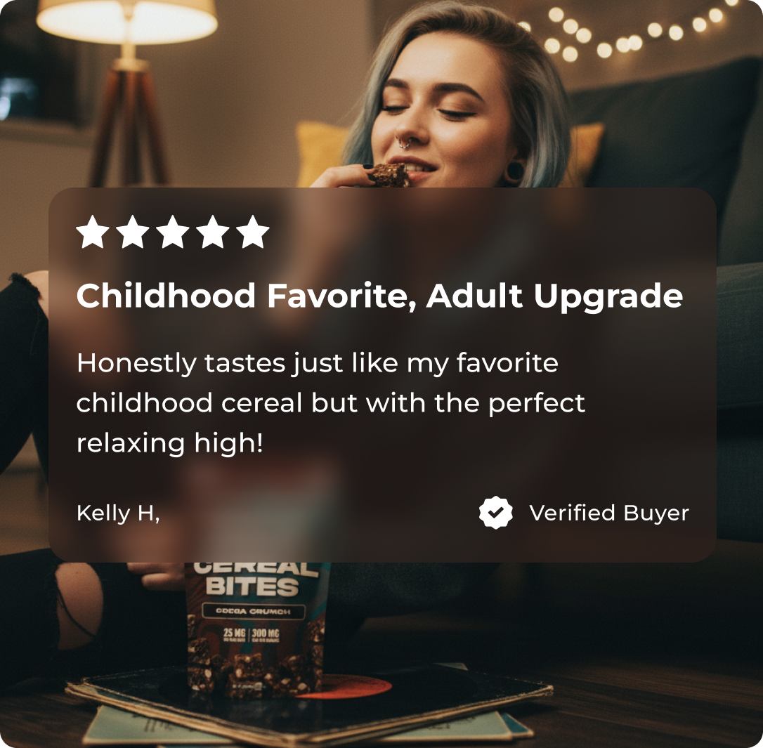 Rich cocoa cereal clusters fused with fluffy marshmallow sweetness and a THC boost. These crunchy, chocolatey squares deliver nostalgic flavor and perfectly balanced effects in every bite-sized piece.