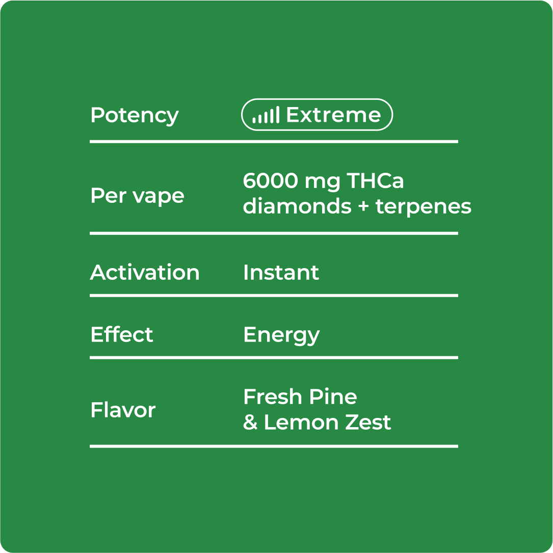 • Expect intense, long-lasting energy and razor focus ideal for powering through long days, creative marathon sessions, or whenever you need sustained sativa clarity