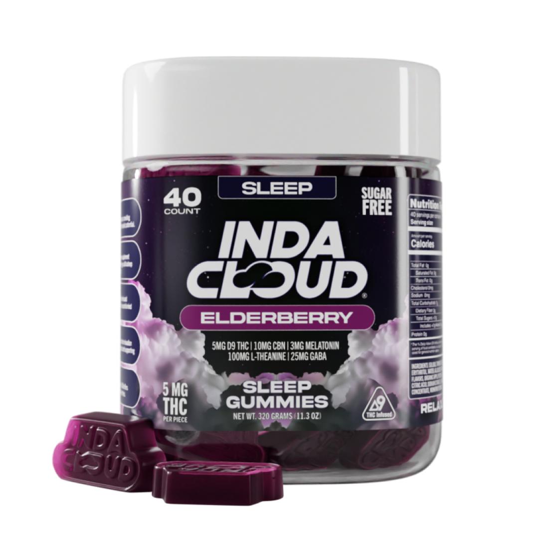 Soluble tapioca fiber, isomalt, water, pectin, citric acid, sorbitol powder, mtc oil, lecithin (from sunflower seeds) natural flavoring, natural color, melatonin, L-theanine, gamma-aminobutyric acid (GABA) hemp derived isomers.