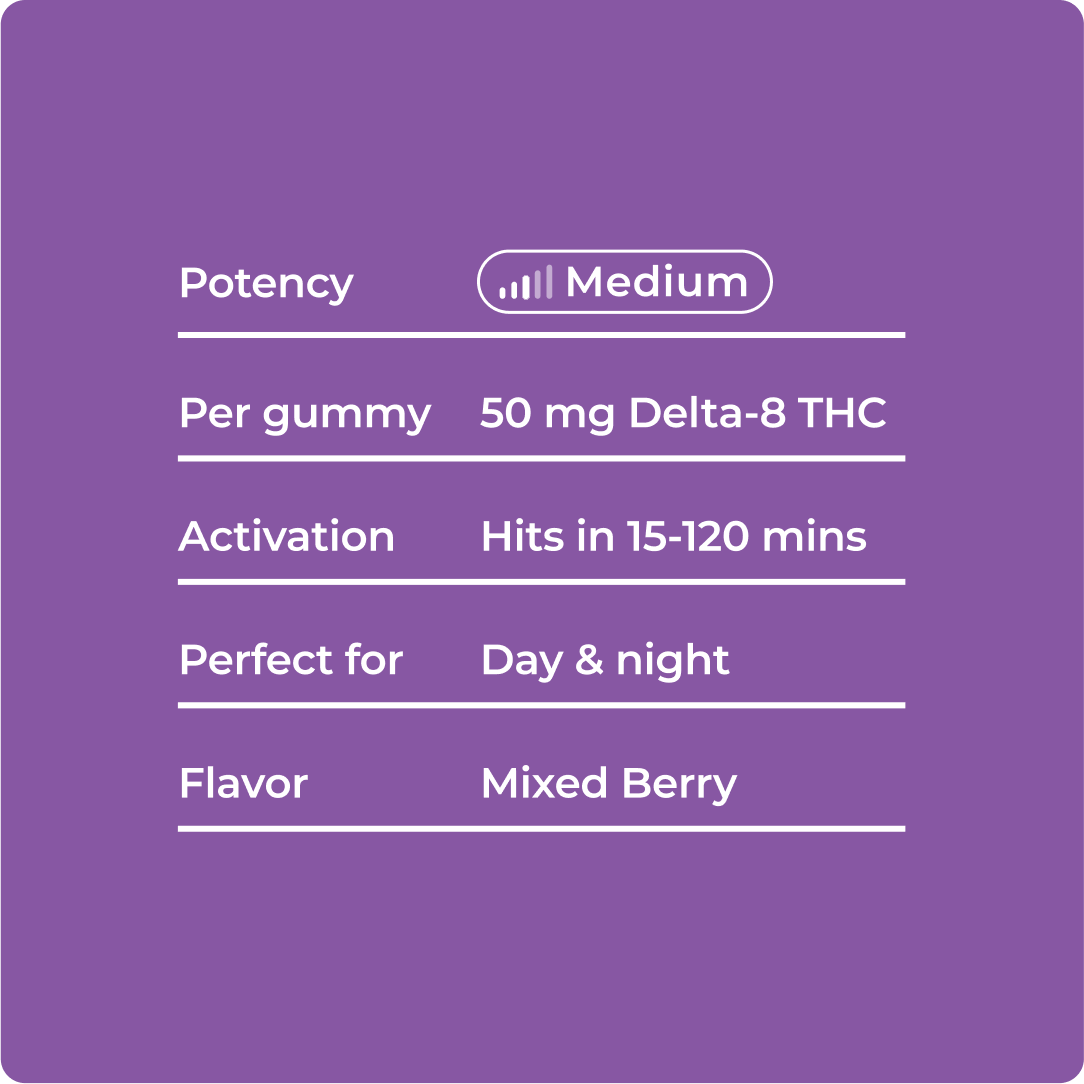 After consuming a Mixed Berry Beach Delta 8 Gummy, you can expect to start experiencing its effects in roughly an hour. The onset is often marked by a slight tingling sensation in the body, followed by a gradual easing of the mind and the washing away of stress. This leads to a state of heightened relaxation that can last for about 6-8 hours. Remember that this timeline may vary among users, depending on factors such as metabolism and tolerance.