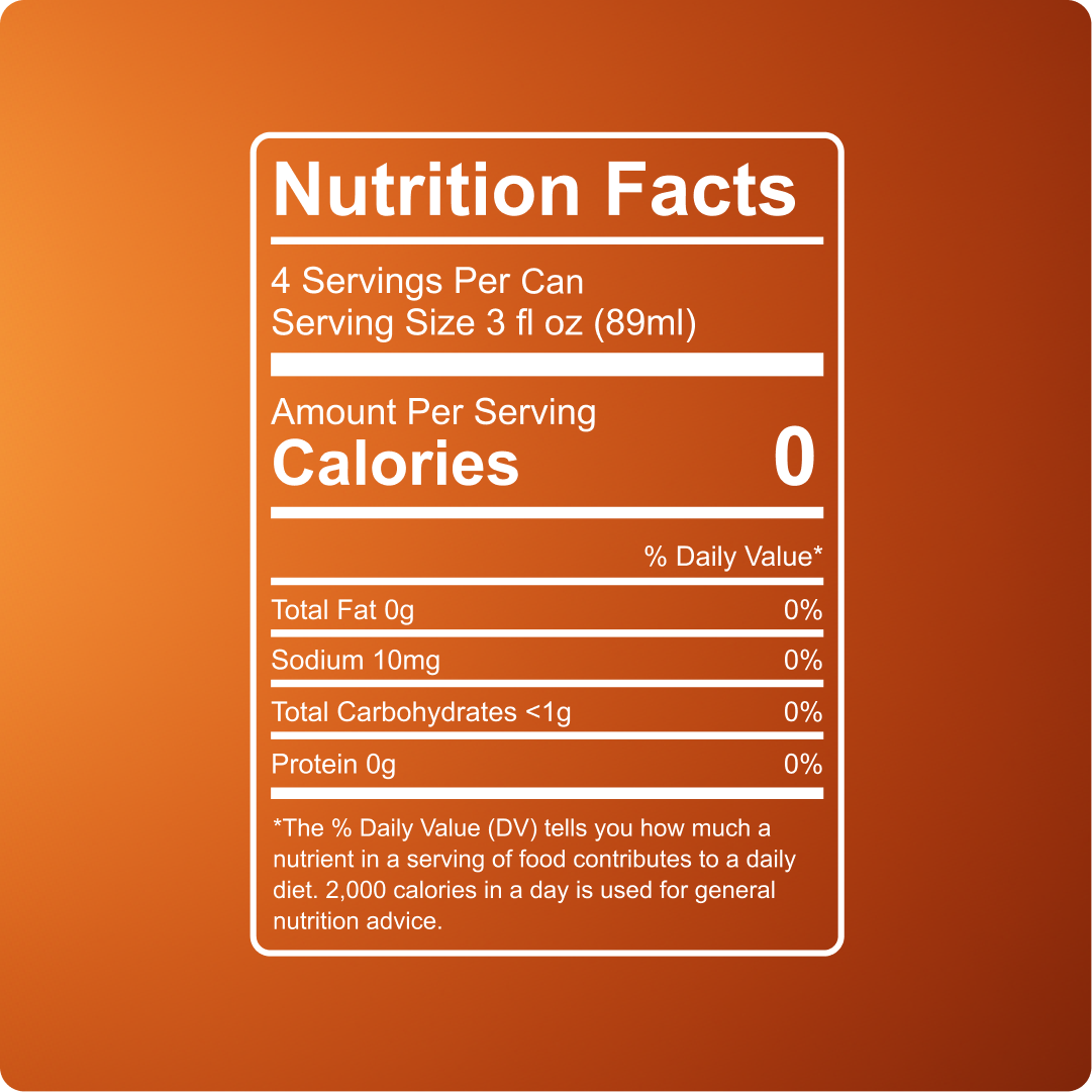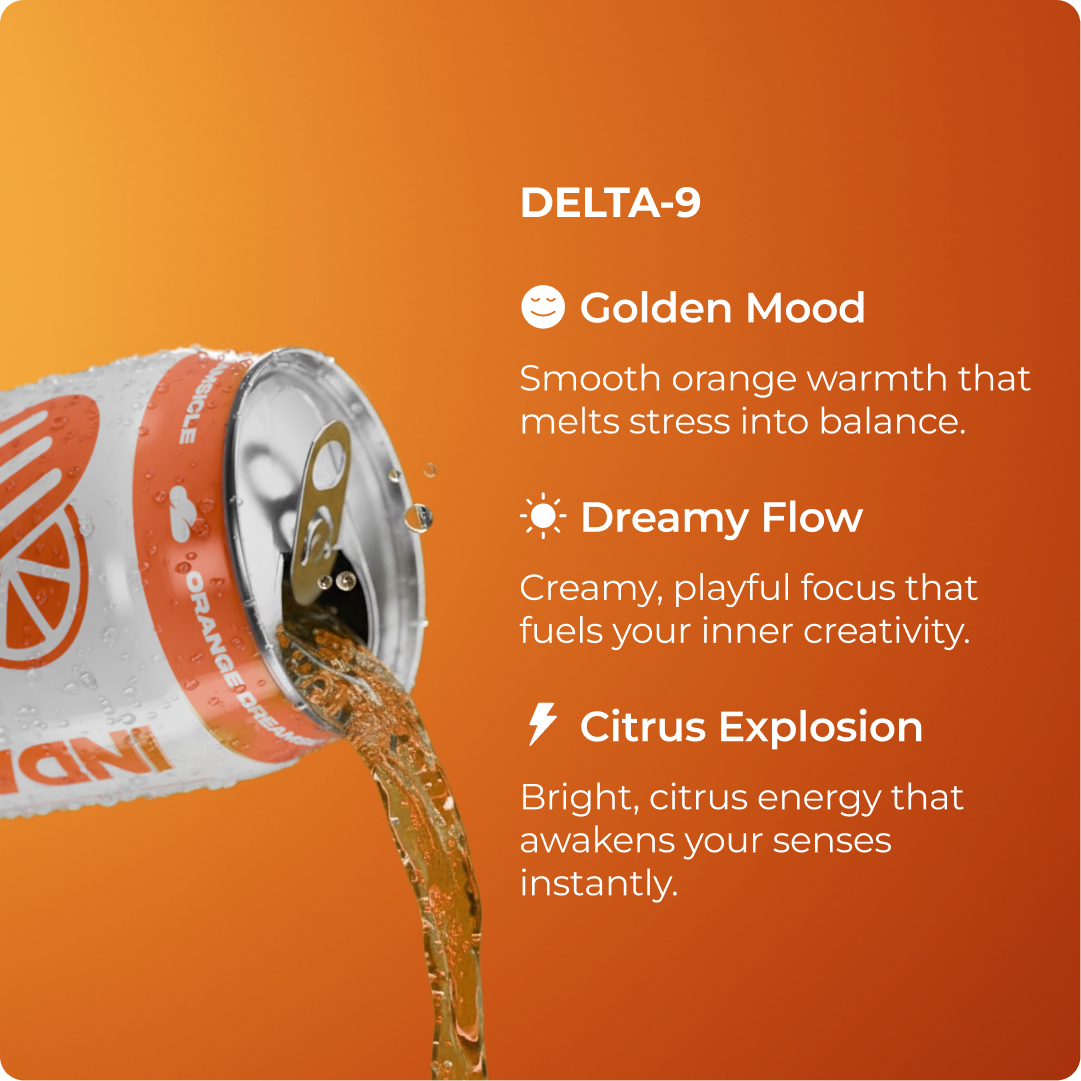 Carbonated RO Water, Natural Flavor, Citric Acid, Acacia Gum, Malic Acid, Tartaric Acid, Sucralose, Natural Orange Color, Salt, Acesulfame Potassium, Hemp-Derived Delta 9 THC