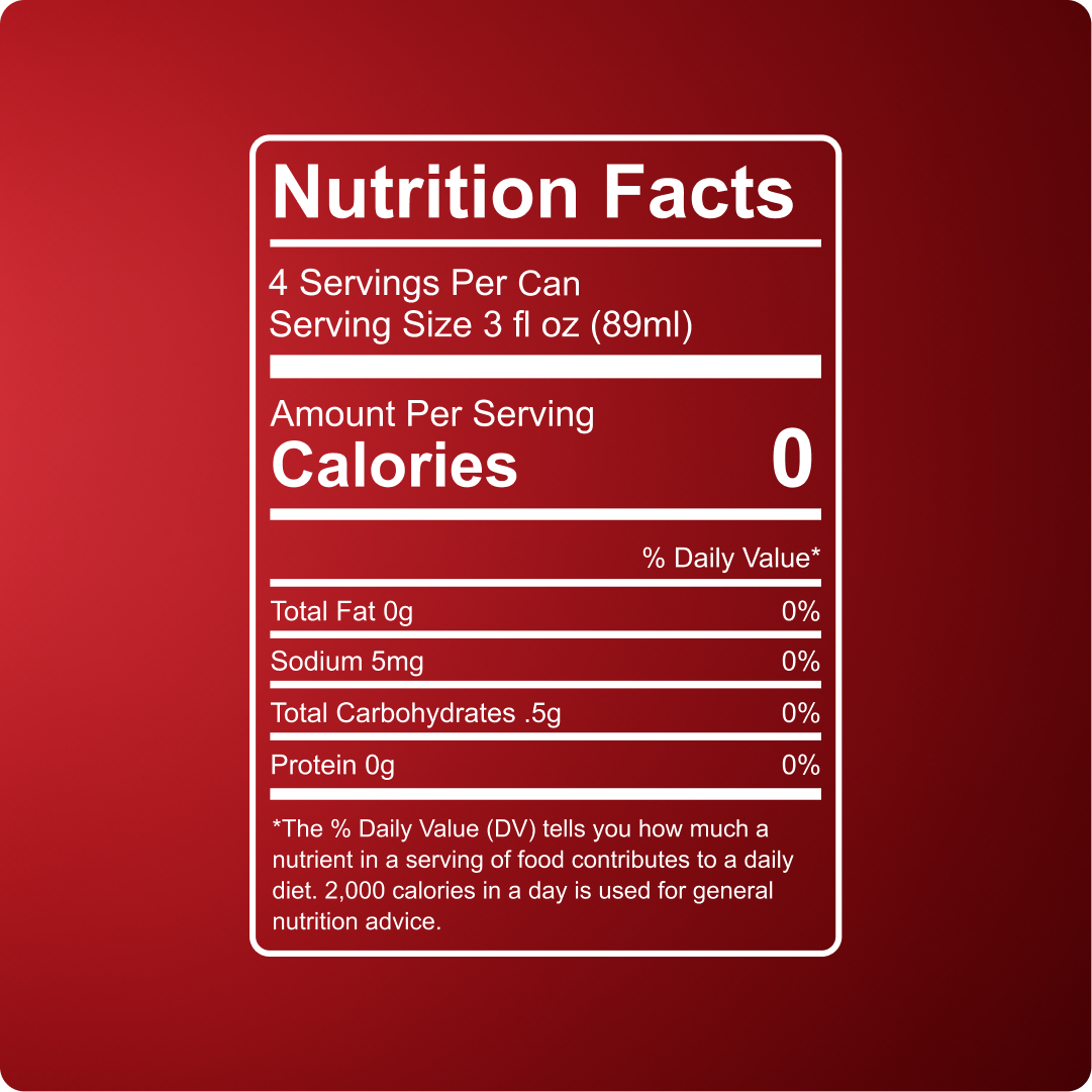 Carbonated RO Water, Natural Flavor, Acacia Gum, Tartaric Acid, Citric Acid, Phosphoric Acid, Sucralose, Salt, Hemp-Derived Delta 9 THC